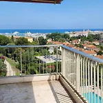 Gasten kunnen genieten van een kust uitzicht op de zee vanaf een terras in Stunning Views Large Balcony Apartment With Pool Antibes villa, op ongeveer 3 km van het Nationaal Museum Fernand Léger.